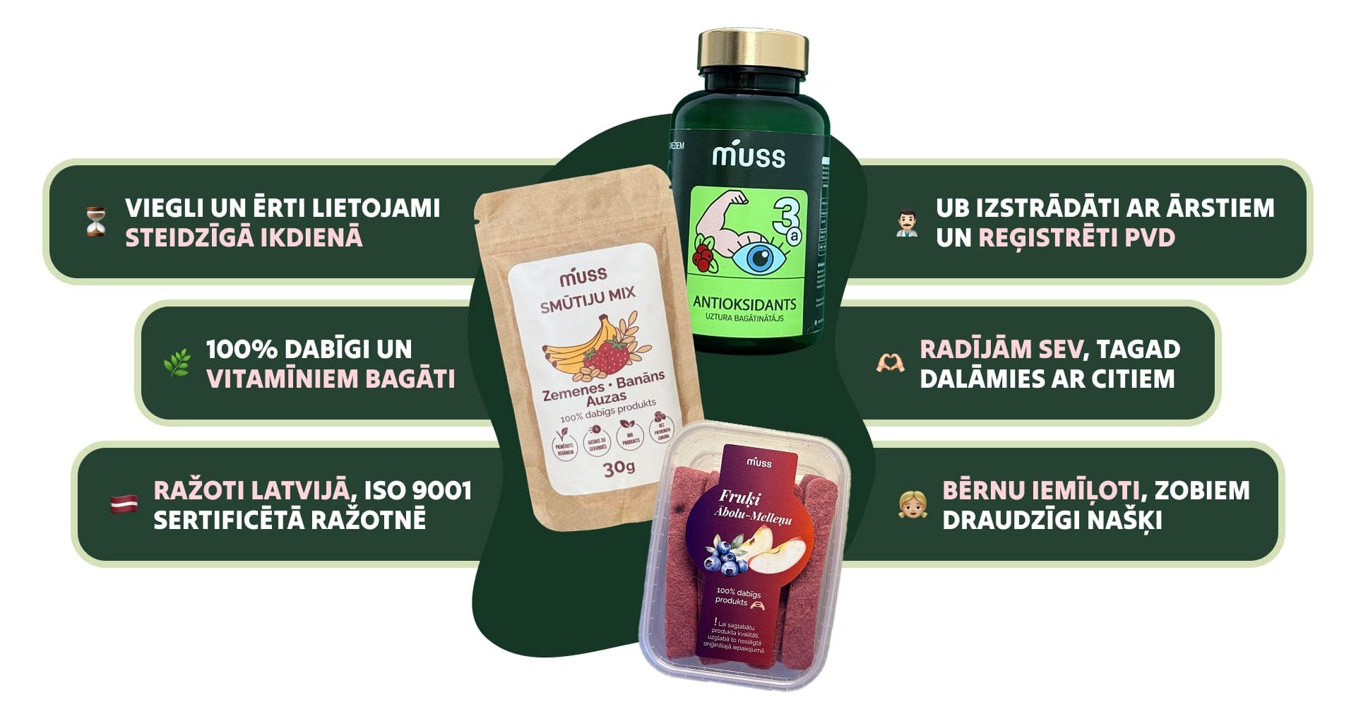 Brīnišķīgs našķis, paldies! Nu vitamīnus varam uzņemt visu cauru gadu. Mums Muss produkti iet uz urrā!🤤