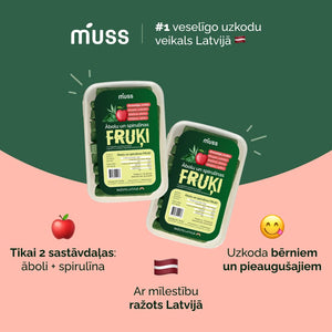 Fruķi ar spirulīnu ir kraukšķīga ābolu uzkoda ar spirulīnas vitamīniem. Ar šo uzkodu spirulīnu var uzņemt viegli un patīkami – bez tās specifiskās pēcgaršas, no kuras daudzi baidās. 😄