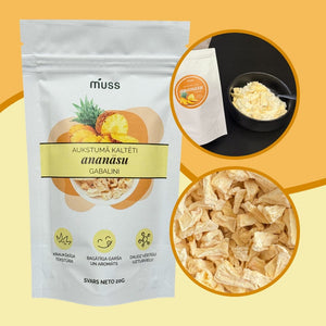 Aukstumā kaltēti ananāsu gabaliņi – veselīga uzkoda, kuru īpaši iecienījuši bērni