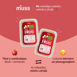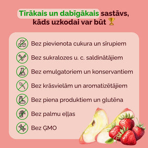 Ābolu-zemeņu Fruķi ir kraukšķīga uzkoda, kas īpaši iecienīta bērnu vidū. Zemenes piešķir patīkamu saldumu bez pievienota cukura, un vecāki novērtē, ka tas ir drošs un vitamīniem bagāts našķis ikdienai. 👧🏼