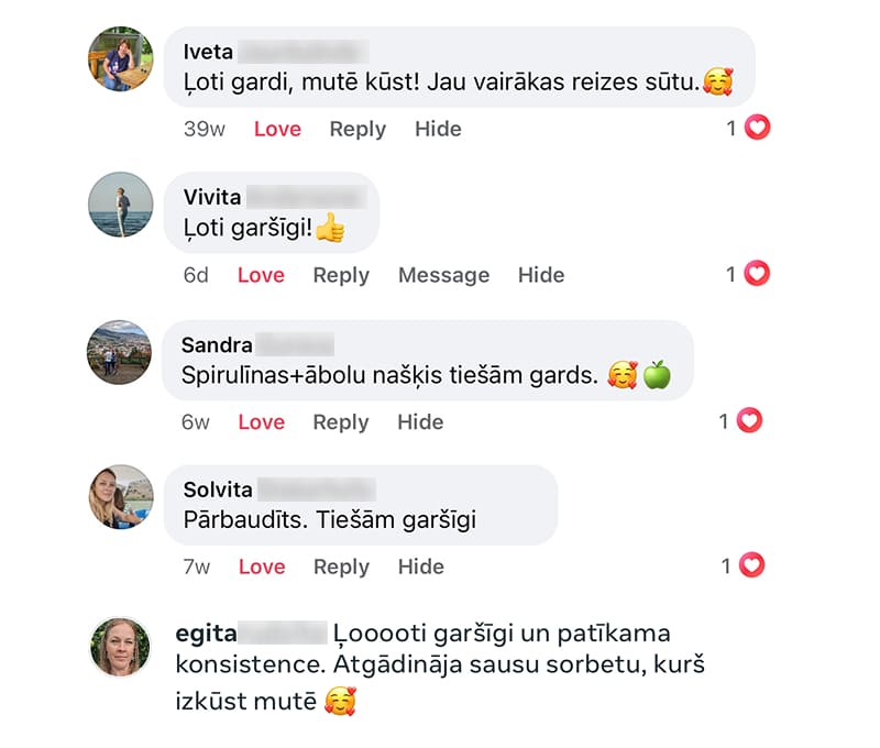 "Godīgi sakot, domāju, ka būs kā parastie žāvētie augļi — gumijaini un lipīgi. Bet fruķi bija pilnīgs pārsteigums. Kraukšķīgi, mutē kūstoši, tiešām pavisam cita pieredze. 🥰🥰”
